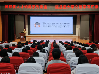 首先,王霞副经理用两句话引入,让大家了解作为一名英语生,最必要的条件就是夯实基本功。其次,王副经理为大家介绍匹兹堡大学,它是美国最早的十所大学之一,在国际中处于领先地位,位列U.S.News世界大学排名的45位。接下来,王教授根据她在美学习期间的经历,总结出了一套完整精炼的学习方法和学习经验,她强调在学习期间应始终坚持积极参与和主动融合,机会在自己手中,要勇于争取,敢于争取。在学习中要占据主动的有利地位,时刻关注学科前沿动态和最新研究成果,以便及时调整自己的学习方向和思路。最后,王霞教授从“life”这个单词着手,将它分解为learn(学习)、improvement(改进)、friendship(友谊)、enjoyment(享受)四个部分,这四个部分也代表了大家的一生要学无止境,不断与时俱进,提升和改进自己,还要正确地处理人际关系,扩大自己的社交圈,才能够真正意义上享受我们的生活,为我们的未来带来质的提升与飞跃。