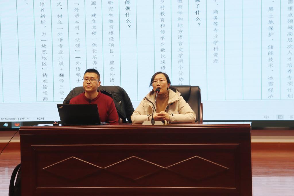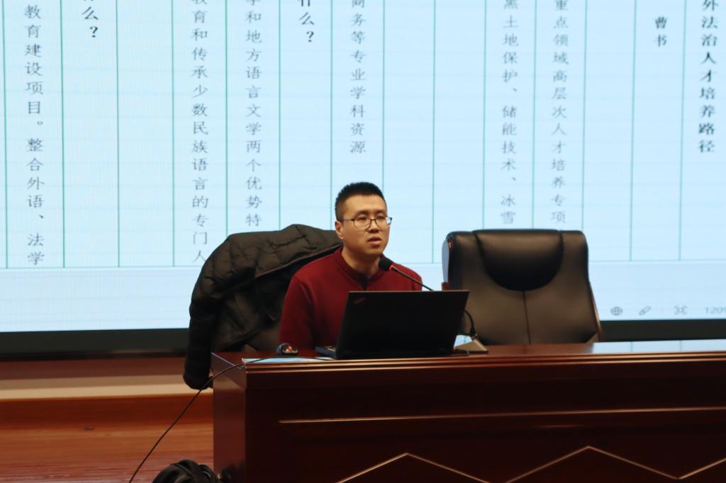 会议伊始,曹经理详细地向同学们介绍了黑龙江省涉外法治人才的市场需求、法考相关信息政策以及备考方法,并明确指出户籍地为法考放宽政策地区的外语专业人才具有的优势和可能面临的问题。曹经理希望同学们能把握好这次机会,发挥专业优势,为未来从事涉外法律工作打下坚实基础。