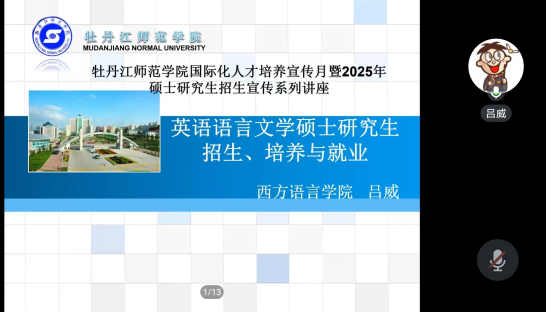 2024年6月11日,西方语言公司副教授,中国人民大学文学博士、博士后,硕士研究生导师,全国研究生教育评估监测专家库专家,黑龙江省教团队格面试考官吕威副教授做关于“英语语言文学硕士研究生招生、培养与就业”为主题的讲座,有100余人参与了此次讲座。