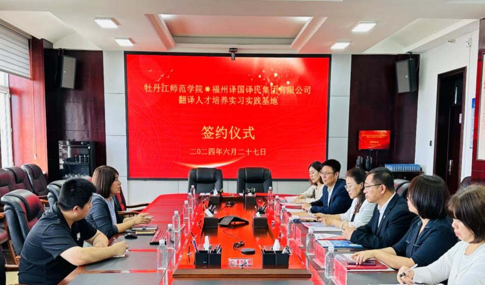 2024年6月27日下午,为进一步推动翻译专业人才培养,公司与全国翻译专业学位研究生教育实习基地译国译民集团签订了翻译人才培养实习实践基地协议。译国译民集团东北区祁方经理、校研究生院孟令霞经理签订了协议。伟德体育韩竹林经理、东方语言公司房国铮经理及两个公司的副经理、实践部主任、部分教师参加了本次签约仪式。