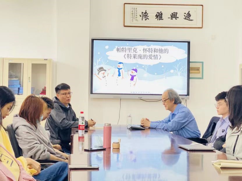 报告中,李尧教授首先介绍了澳大利亚小说家帕特里克•怀特的生平及其创作经历。帕特里克•怀特一生所创作了12部小说、4部短故事集、8部剧本和非小说类文学作品。1973年他获得诺贝尔文学奖,被誉为20世纪最重要的英文作家之一。随后,李尧教授以帕特里克•怀特《特莱庞的爱情》的汉译为例,详尽解读了他在翻译《特莱庞的爱情》过程中的难点和亮点,与在场的师生分享了自己的文学翻译实践经验,拓展了同学们的翻译思路,并激发了同学们探索文学翻译的热情。