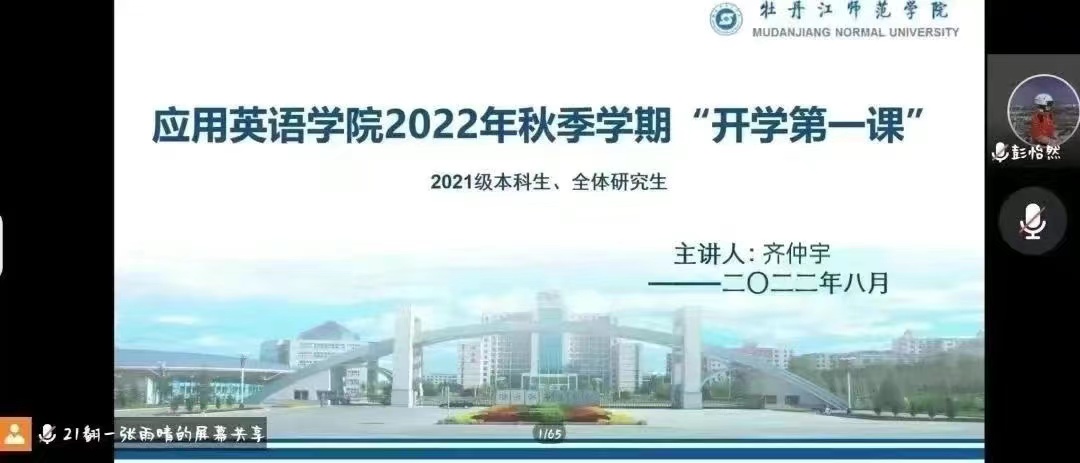 万宇慧老师对全体研究生及2021级本科生提出了新学期的新期望。一是同学们要结合自身性格特点,提前合理的做好人生规划;二是要尽快设定预期学习目标,从而为之努力,养成良好的学习习惯;三是要心怀感人、满怀希望,培养良好情绪品格;四是要坚持锻炼身体,促进身心健康发展。她勉励各位同学:人生只有走出来的美丽,没有等出来的辉煌,未来并不遥远,一定要自律,早日实现自己的人生理想。